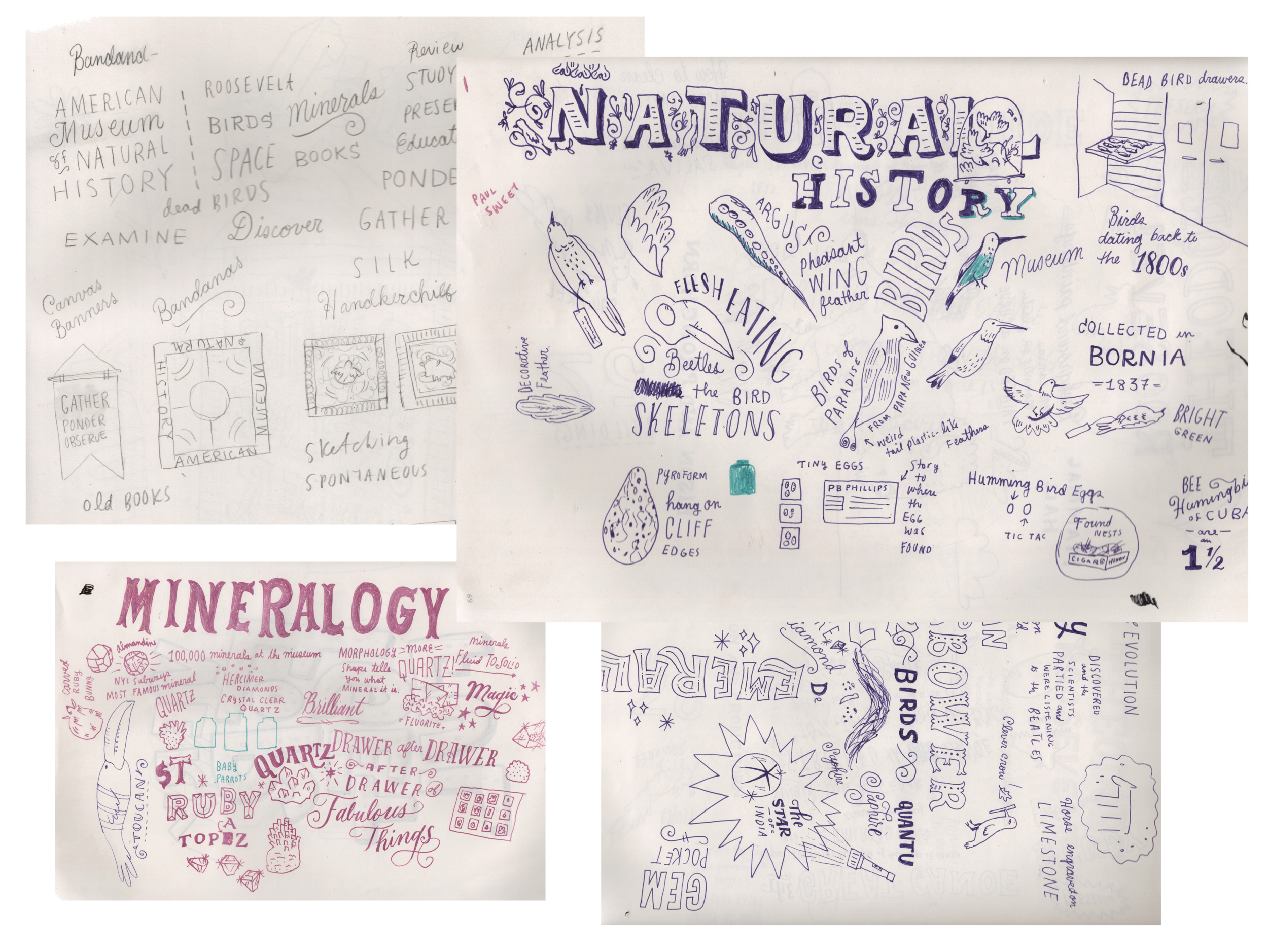 We had the opportunity to tour the archives at the American Museum of Natural History. We met with folks from the rare book archives, Mineralogy, and drawers and drawers of birds. These are my notes from the tour, I used a lot of the detials I picked up from the tour in the designs of our products.