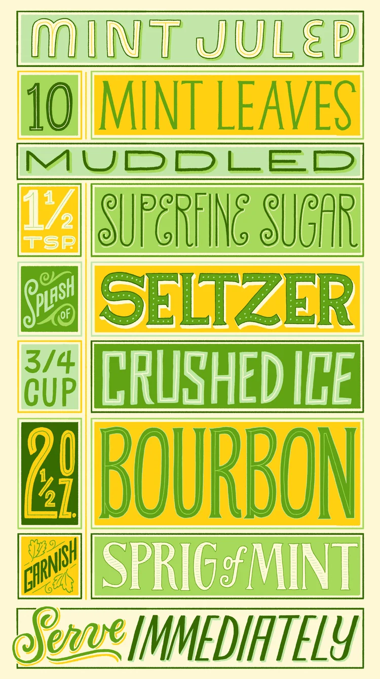 I created these hand-lettered coffee phrases for a mini calendar published by Workman Publishing. Each month is a new, colorful, hand-lettered illustration.