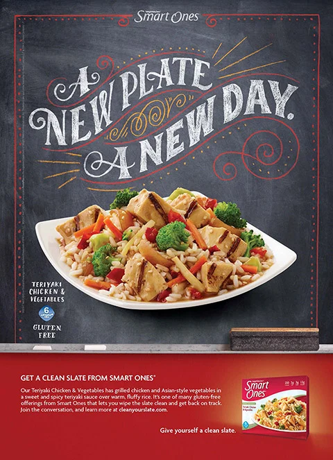 I had the pleasure of creating chalkboard lettering for the Smart Ones Clean Slate campaign.